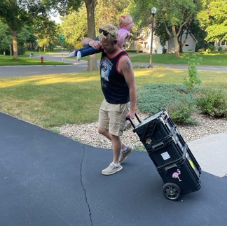 Now we have 2 little ladies - Abby and Hazel. Hazel gets a bin and Abby gets one too. We stock with clothes, diapers, monitors, bibs, and all the essentials. When we get to the cabin we separate the stack and each kiddo gets their stuff in their room. If you are looking for a convenient way to travel with multiple kiddos or just another way to organize - the rolling tool box does not disappoint.